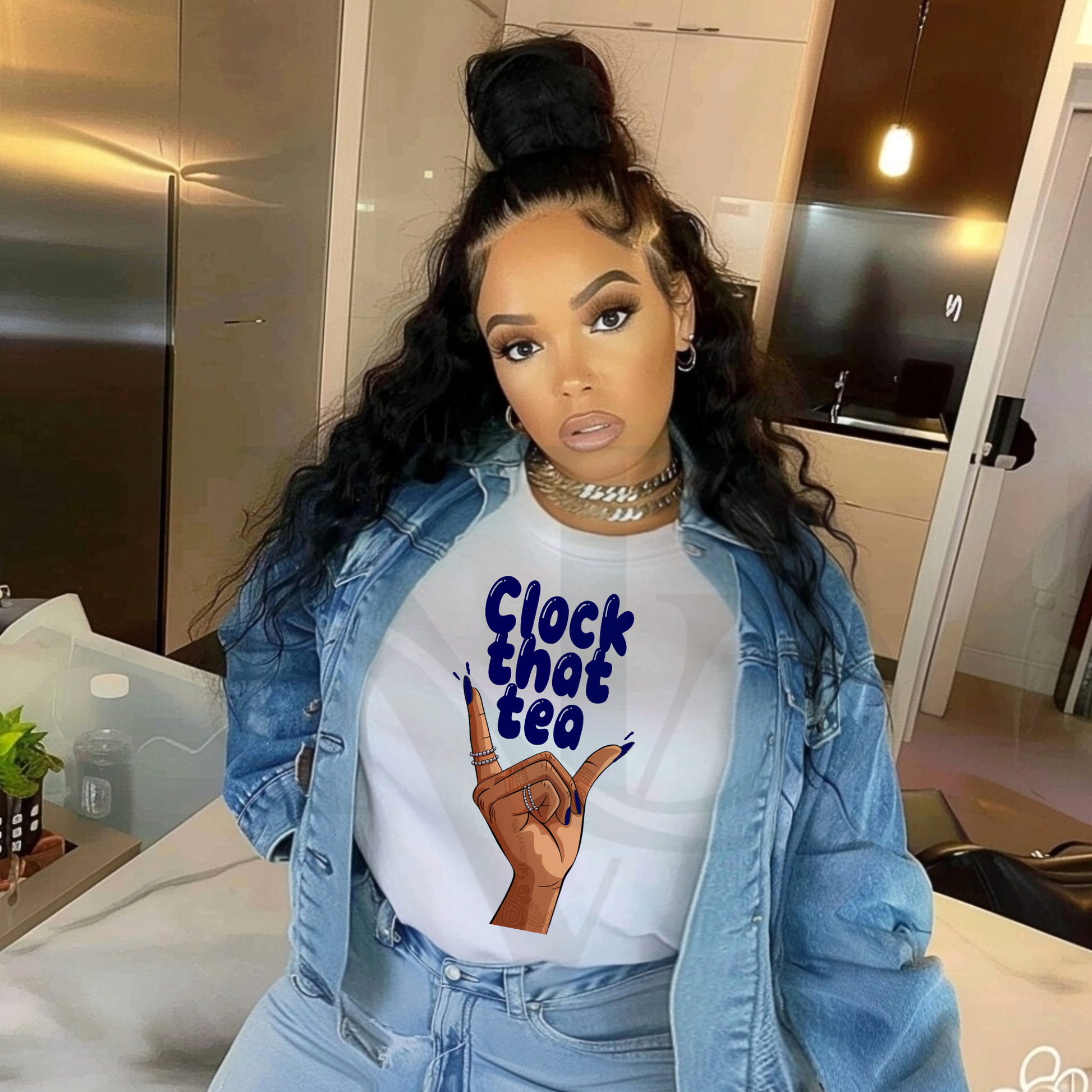 Turn heads and clock conversations with this bold, unapologetic “Clock That Tea” PNG! Featuring a rich melanin hand dripping in rings, fresh nails, and pure attitude — this design brings main character energy to whatever you’re crafting.