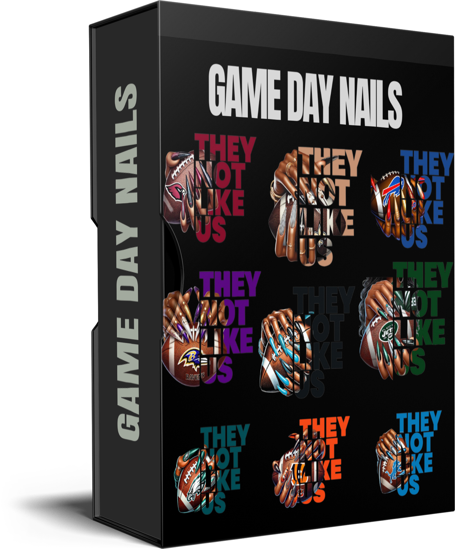 Show your team pride from fingertip to field. This 32-Team Football Nail Design Bundle includes 32 unique football nail art designs that feature football-inspired styled in each team’s signature color palette. Files are perfect for tees, tumblers, stickers, and mockups too.