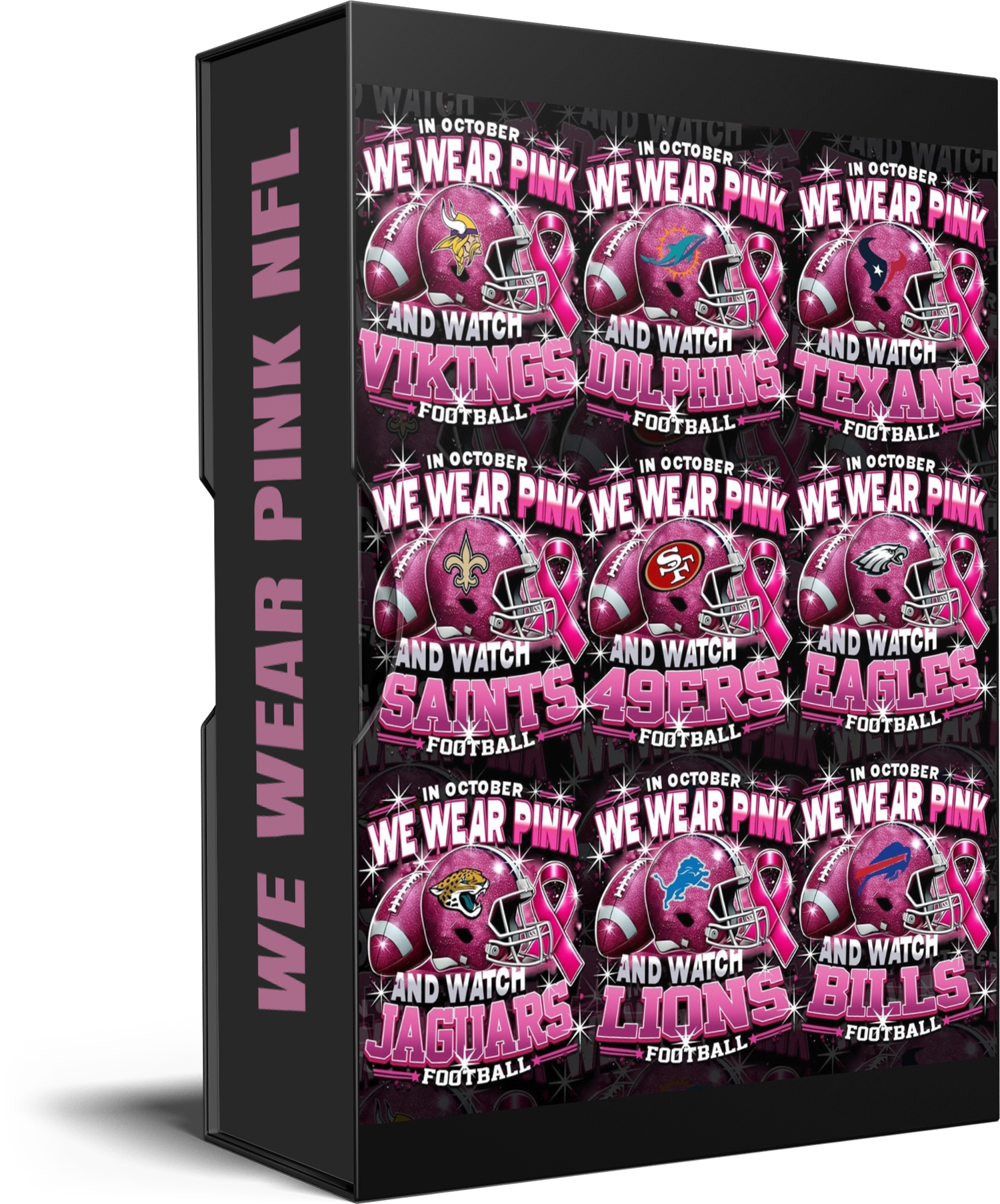 Go all-in with the ultimate We Wear Pink Sports Bundle! - Get all 32 Sports teams in one premium collection — sparkling pink helmets, awareness ribbons, and bold typography that shines with team pride. Create endless designs for October and beyond — from tees and hoodies to mugs and digital art.